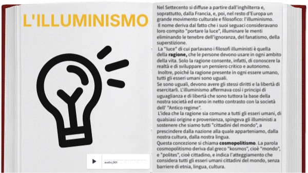 Nel Settecento si diffuse a partire dall'inghilterra e, soprattutto, dalla Francia, e, poi, nel resto d'Europa un grande movimento culturale e filosofico: l'illuminismo. Il nome deriva dal fatto che i suoi seguaci consideravano loro compito "portare la luce", illuminare le menti eliminando le tenebre dell'ignoranza, del fanatismo, della superstizione. La "luce" di cui parlavano i filosofi illuministi è quella della ragione, che le persone devono usare in ogni ambito della vita. Solo la ragione consente, infatti, di conoscere la realtà e di sviluppare un pensiero critico e autonomo. Inoltre, poiché la ragione presente in ogni essere umano, tutti gli esseri umani sono uguali. Se sono uguali, devono avere gli stessi diritti e la libertà di esercitarli. L'illuminismo affermava così i principi di uguaglianza e di libertà che sono tuttora la base della nostra società ed erano in netto contrasto con la società dell' "Antico regime". L'idea che la ragione sia comune a tutti gli esseri umani, di qualsiasi origine e provenienza, spingeva gli illuministi a sostenere che siamo tutti "cittadini del mondo", a prescindere dalla nazione alla quale apparteniamo, dalla nostra cultura, dalla nostra lingua. Questa concezione si chiama cosmopolitismo. La parola cosmopolitismo deriva dal greco "kosmos", cioè "mondo", e "polites", cioè cittadino, e indica l'atteggiamento che considera tutti gli esseri umani cittadini del mondo, senza barriere di etnia, lingua, cultura.
