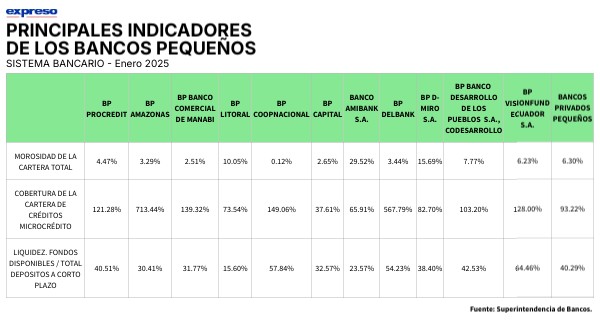 Principales indicadores de los bancos pequeños