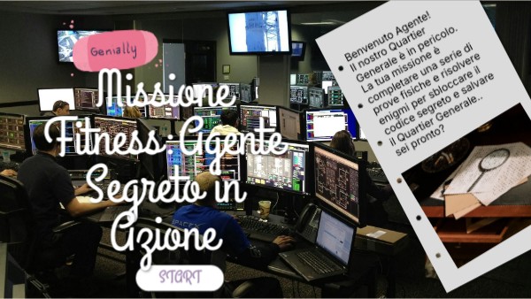Benvenuto Agente! Il nostro Quartier Generale è in pericolo. La tua missione è completare una serie di prove fisiche e risolvere enigmi per sbloccare il codice segreto e salvare il Quartier Generale.. sei pronto?