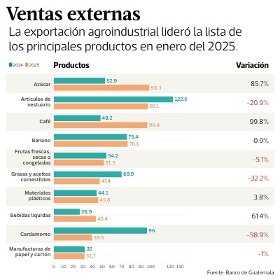 La exportación agroindustrial lideró la lista de los principales productos en enero del 2025.