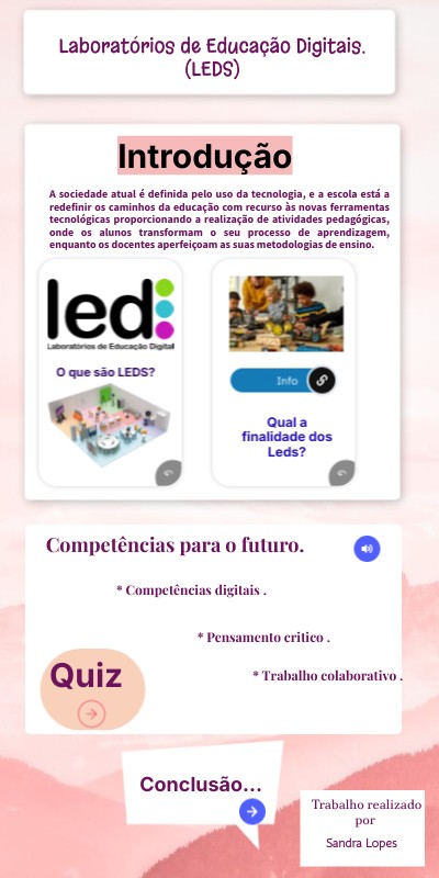 Contudo, a reflexão sobre os LEDs deve considerar tanto as suas potencialidades como os seus desafios, garantindo que a tecnologia seja um meio de inovação pedagógica e não apenas um recurso complementar sem impacto significativo.