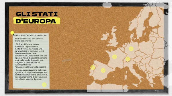 La monarchia parlamentare è una forma di governo dove lo Stato è rappresentato da un re. Il potere del re è limitato da una Costituzione, cioè dalle leggi dello Stato. Il re sceglie il capo del governo, cioè la persona che esercita il potere. La repubblica è La forma di governo più diffusa in Europa. La repubblica può essere di due tipi: • repubblica presidenziale: il popolo sceglie il presidente della Repubblica che poi sceglie il capo del governo. • repubblica parlamentare: il popolo sceglie il Parlamento, che poi sceglie il presidente della Repubblica. Gli Stati possono essere: • unitari, se il potere è di un governo centrale; • federali, se sono formati da un insieme di piccoli Stati che hanno poteri e autonomia in molti settori (come l’istruzione e la sanità) e che lasciano al governo centrale solo alcuni poteri di interesse generale