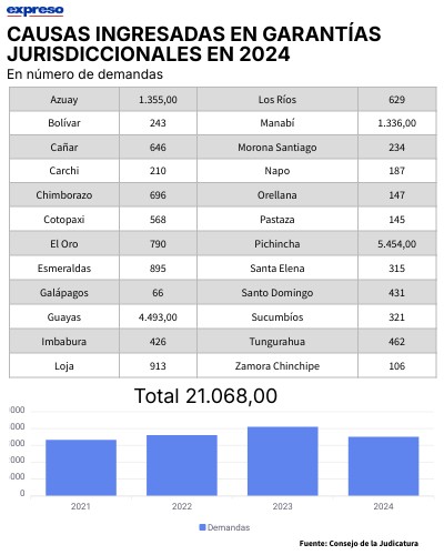 Causas ingresadas en garantías jurisdiccionales en 2024