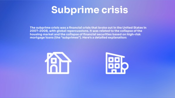 The subprime crisis was a financial crisis that broke out in the United States in 2007-2008, with global repercussions. It was related to the collapse of the housing market and the collapse of financial securities based on high-risk mortgage loans (the "subprimes"). Here's a detailed explanation: