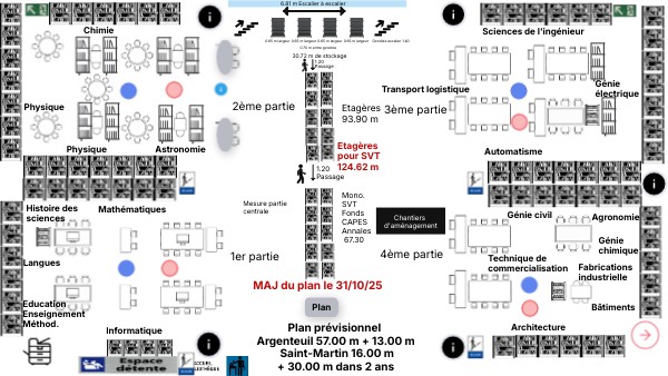 Etagères existants 114.79 Etagères en prévision 36.00 Fonds monographies existants Astronomie Physique Chimie Prepa physique/chimie ancien nouveau CAPES physique/chimie 104.53
