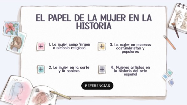 Cedón, E. (2024). Delante de las meninasFundación Goya en Aragón. (s.f.). María del Pilar Teresa Cayetana de Silva Álvarez de Toledo, XIII duquesa de Alba. Recuperado de https://fundaciongoyaenaragon.es/obra/maria-del-pilar-teresa-cayetana-de-silva-alvarez-de-toledo-xiii-duquesa-de-alba/371Museo Nacional del Prado. Las meninas. Recuperado de https://www.museodelprado.es/en/the-collection/art-work/las-meninas/9fdc7800-9ade-48b0-ab8b-edee94ea877f National Geographic Historia. (2023). El romance entre Goya y la duquesa de Alba: ¿mito o realidad?. Recuperado de https://historia.nationalgeographic.com.es/a/romance-entre-goya-y-duquesa-alba-mito-o-realidad_23091 Sobré, J. B. (1988). La Tabla de la Virgen de la Leche, de Bartolomé Bermejo, en el Museo de Bellas Artes de Valencia y algunas reflexiones sobre su educación artística. Archivo de arte valenciano, (69), 54-59. Museo Nacional del Prado. (s.f.). La Inmaculada Concepción de los Venerables - Murillo. Museo Nacional del Prado. Recuperado el [fecha de consulta], de https://www.museodelprado.es/coleccion/obra-de-arte/la-inmaculada-concepcion-de-los-venerables/76179d81-beaf-4f9e-9a05-ef92340a00d1 Museo Nacional del Prado. (s.f.). La maja desnuda / La maja vestida. Recuperado de https://www.museodelprado.es Bozal, V. (2005). Francisco Goya. Madrid: Ediciones Akal. Museo Nacional del Prado. (s.f.). Sofonisba Anguissola. Recuperado de https://www.museodelprado.es Chadwick, W. (2007). Mujeres, arte y sociedad (3.ª ed.). Madrid: Akal.