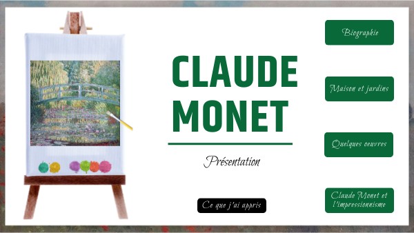 PAGE MONET ET L'IMPRESSIONNISME : Insérer du texte, images, ressources, Éléments interactifs, animation, ajouter de l'interactivitÉ