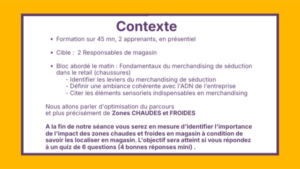 - Bloc abordé le matin : Fondamentaux du merchandising de séduction dans le retail (chaussures)
