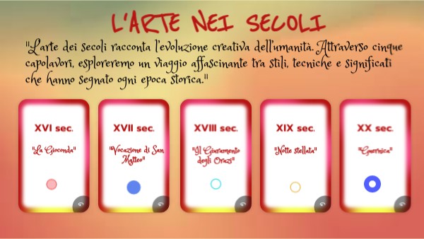 "L’arte dei secoli racconta l’evoluzione creativa dell’umanità. Attraverso cinque capolavori, esploreremo un viaggio affascinante tra stili, tecniche e significati che hanno segnato ogni epoca storica."