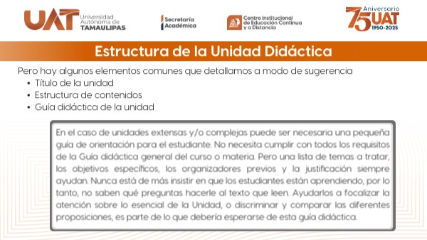 - En el caso de unidades extensas y/o complejas puede ser necesaria una pequeña guía de orientación para el estudiante