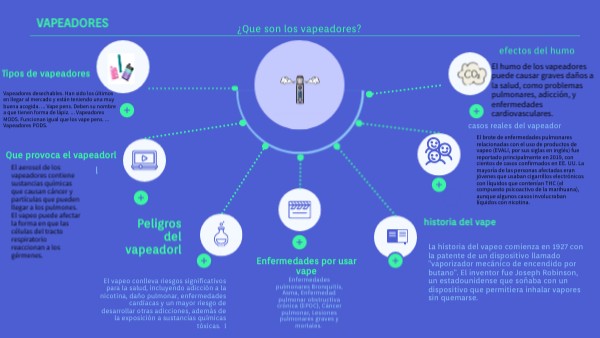 El humo de los vapeadores puede causar graves daños a la salud, como problemas pulmonares, adicción, y enfermedades cardiovasculares.
