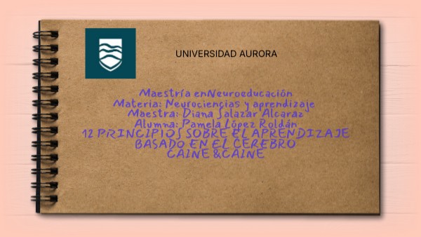 Maestría enNeuroeducaciónMateria: Neurociencias y aprendizaje Maestra: Diana Salazar Alcaraz Alumna: Pamela López Roldán 12 PRINCIPIOS SOBRE EL APRENDIZAJE BASADO EN EL CEREBRO CAINE &CAINE