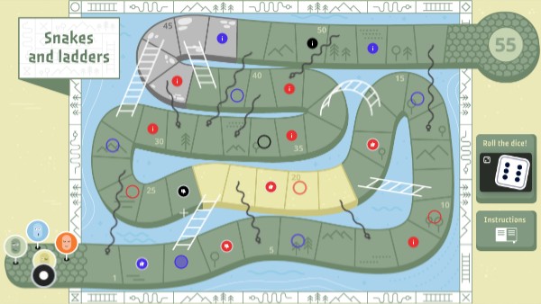 Se il giocatore atterra su una casella in cui inizia la coda di un serpente, scende in una casella più bassa, dove si trova la testa.