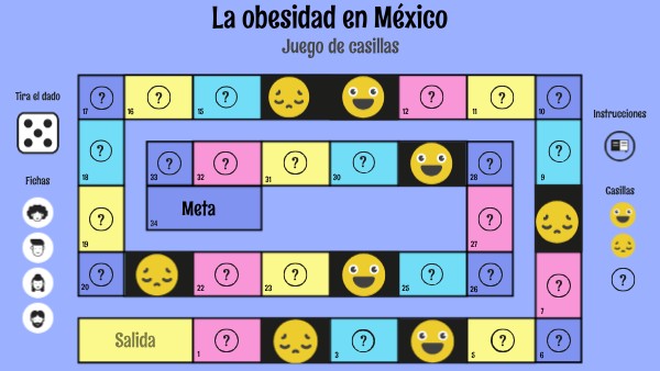 Desde la casilla de salida, tendrán que ir tirando el dado y moviendo sus personajes.Cada vez que tiren el dado, caerán en una casilla y tendrán que responder la pregunta. Cuando la pregunta sea correcta, lanzarán el dado y moverán las casillas según el dado. Cuando la pregunta sea incorrecta, su turno se saltará. En caso de que caiga en una pregunta ya respondida, tirará el dado de nuevo y avanzara DESDE su casilla de origen