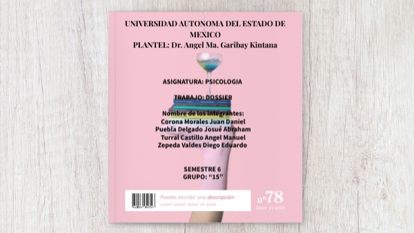ASIGNATURA: PSICOLOGIA TRABAJO: DOSSIER Nombre de los integrantes: Corona Morales Juan Daniel Puebla Delgado Josué Abraham Turral Castillo Angel Manuel Zepeda Valdes Diego Eduardo SEMESTRE 6 GRUPO: “15”