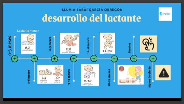 Linea del tiempo, con información sobre el desarrollo social,motor y psicosocial.