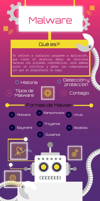 Se refiere a cualquier programa o aplicación, que tiene el objetivo dañar de distintas maneras los sistemas informáticos, este ademas estos se infiltran y dañan las computadoras sin que el propietario lo sepa.