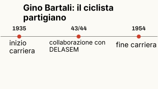 Tra il 43 e il 44 Bartali si uni alla DELASEM un'organizzazione clandestina che aiutava i profughi ebrei dalla perseguzione. Bartali in questo arco di tempo salvò più di 800 ebrei grazie a dei documenti falsi che nascondeva nei tubi della bici.Dopo la fine dell'olocausto Bartali riusì a salvare più di 800 ebrei però non disse mai nulla riguardo a queste gesta. Solo dopo la morte suo figlio Andrea venne a scoprire tutto e decise di condividerlo con tutti.