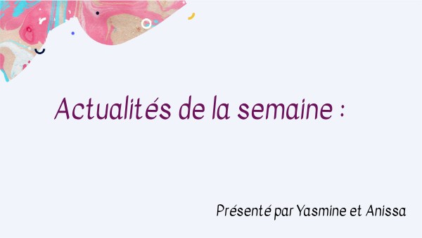 Actualités de la semaine :