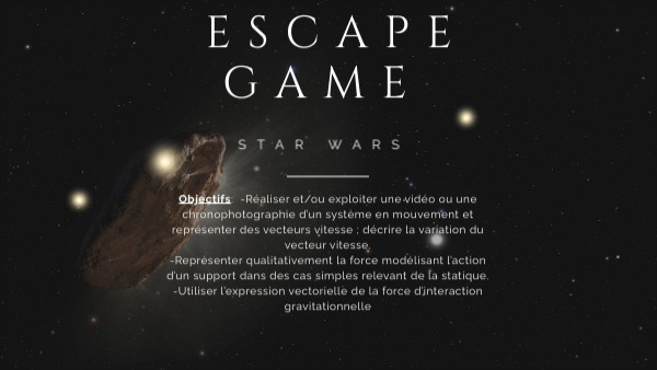 L’Étoile de la Mort se positionne à 36 000 000 m d’une planète pour un tir optimal. Entièrement en acier, sa masse est immense, rendant négligeable celle des vaisseaux à l’intérieur. Nous devons vérifier si elle pourrait remplacer la Lune en tant que satellite de la Terre si elle s’en approche trop. Pour cela, vous devez: - Réaliser un schéma des forces entre la Terre et l'étoile de la mort. - Calculer la valeur de la force d'interaction gravitationnelle entre la Lune et la Terre. - Calculer la valeur de la force d'interaction gravitationnelle entre l'étoile de la mort et la Terre. -En déduire le rapport des forces d’interactions gravitationnelles exercées par la Lune sur la Terre et par l’étoile de la mort sur la Terre. Les chercheurs ont estimé que si le rapport est inférieur à 30, alors l’étoile de la mort n’a pas trop d’effet sur la Terre.