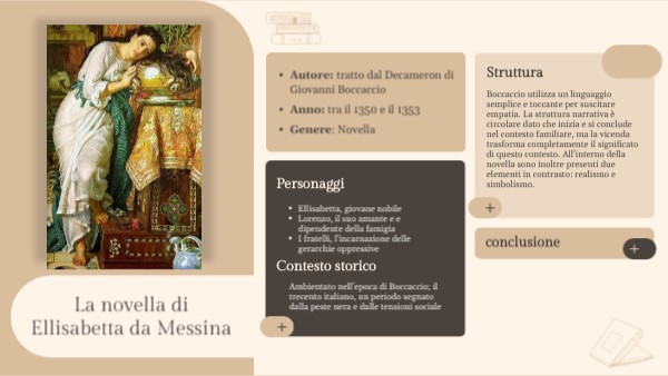 • Motivo macabro → collegamento con Tancredi e Ghismunda (testa/cuore dell’amato). • Amore vs ragione mercantile → contrasto tra sentimenti e interessi economici. • Simbolismo della fecondità → la testa di Lorenzo diventa per Ellisabetta come un figlio da accudire.