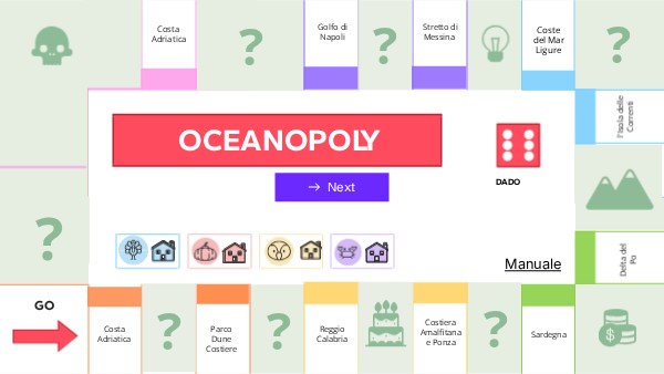 Inizia scegliendo una pedina, fai girare il dado (toccandolo) e avanza in base al numero che ti è uscito.