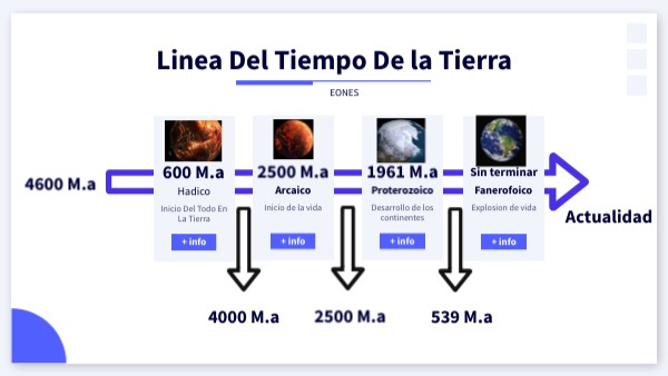 - Inicio (4.6 mil millones de años): Formación de la Tierra.