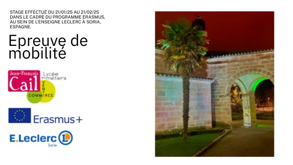 Stage effectué du 21/01/25 au 21/02/25 dans le cadre du programme Erasmus, au sein de l’enseigne Leclerc à Soria, Espagne.