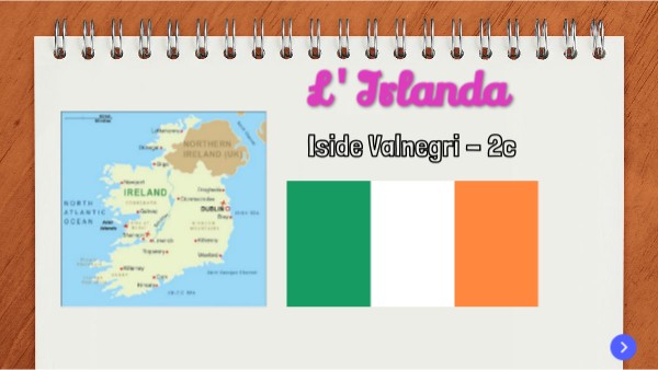 L'Irlanda è prevalentemente pianeggiante con delle colline sparse nel territorio.L'Irlanda ha una superficie di 70.273 Km2. Il vasto bassopiano è attraversato da fiumi che, nelle varie conche formate dai ghiacciai, ristagnano formando paludi e turbierem (un ambiente freddo e umido dove si deposita un combustibile chiamato torba). Le aree più montuose dell'isola sono le coste meridionali con la cima più alta che è il Carrantuohill (1041m). Le coste occidentali sono articolate e frastagliate, mentre le coste orientali sono basse e sabbiose. I laghi più grandi sono: Ree e Derg; mentre il fiume più importante è lo Shannon. Il clima è oceanico umido con forti pioggie lungo il corso dell'anno.