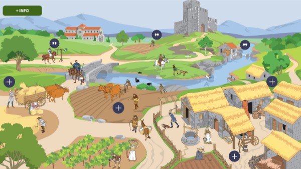 Clica nos vários elementos interativos e descobre como era o modo de vida do povo.