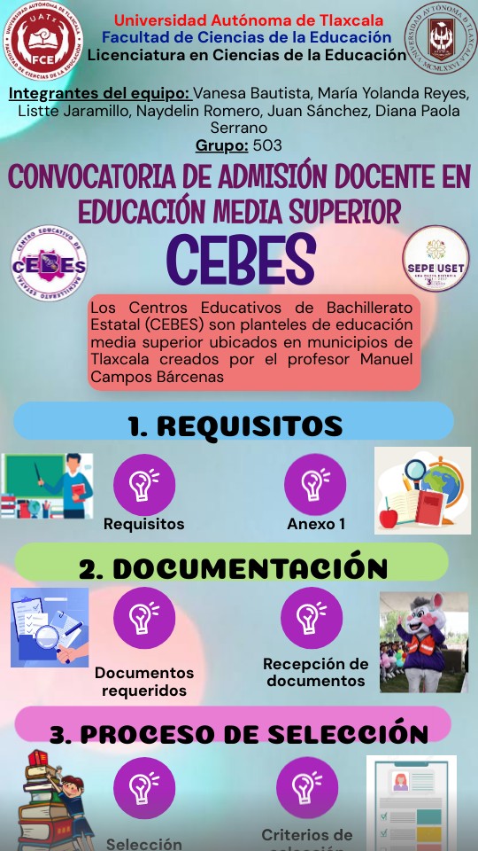 Referencia bibliográfica: Secretaría de Educación Pública de Tlaxcala - USET. (2024). Convocatoria CEBES, proceso de contratación de personal docente. Secretaría de Educación Pública de Tlaxcala – USET. https://www.facebook.com/share/p/18ZWAci6bC/ Evidencias de publicación: