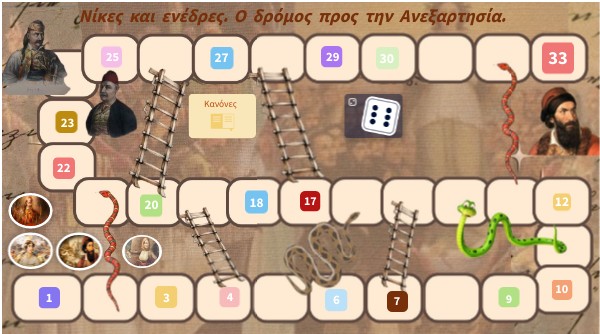 Ο Αγώνας για την Ανεξαρτησία είναι μια δύσκολη υπόθεση. Απαιτεί συλλογικότητα, συμφωνία και ομοψυχία. Σκοπός σας είναι να φτάσετε πρώτοι στο Λονδίνο για να υπογράψετε την Ανεξαρτησία της Ελλάδας. Χωριστείτε σε ομάδες και επιλέξτε ένα από τα draggable πιόνια που βρίσκονται αριστερά και εικονίζουν κάποιον ήρωα. Στη συνέχεια, ξεκινήστε το παιχνίδι. Η κάθε ομάδα ρίχνει το ζάρι. Η ομάδα που θα φέρει τον μεγαλύτερο αριθμό παίζει πρώτη. Ρίχνει το ζάρι και μετακινεί το πιόνι τόσες θέσεις όσες δηλώνει ο αριθμός του ζαριού. Αν στη θέση υπάρχει "διαδραστικό στοιχείο" τότε η ομάδα θα πρέπει να ανταποκριθεί στη "δοκιμασία" για να προχωρήσει κάποιες θέσεις, να παραμείνει στη θέση της ή να πάει πίσω όσες θέσεις δηλώνει το ζάρι. Αν μία ομάδα βρεθεί σε θέση όπου εικονίζεται η βάση μιας σκάλας, τότε η ομάδα, αφού ανταποκριθεί στη "δοκιμασία" ανεβαίνει τη σκάλα και οδηγείται στη θέση όπου εικονίζεται η κορυφή της. Ειδάλλως, παραμένει στη θέση που βρίσκεται. Αν μια ομάδα βρεθεί σε θέση όπου εικονίζεται η ουρά ενός φιδιού δηλ. πέσει σε ενέδρα των Τούρκων, τότε μετακινείται στο τετράγωνο όπου εικονίζεται το κεφάλι του φιδιού και περιμένει τη σειρά της για να συνεχίσει το παιχνίδι. Η νικητήρια ομάδα είναι αυτή που θα καταφέρει να τερματίσει πρώτη.