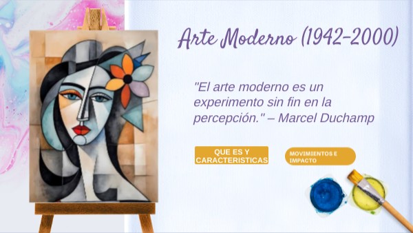 El arte moderno es un movimiento artístico que abarca aproximadamente desde la segunda mitad del siglo XIX hasta mediados del siglo XX. Se caracteriza por una ruptura con las tradiciones artísticas anteriores y una búsqueda de nuevas formas de expresión.