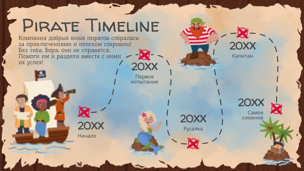 Компания добрых юных пиратов собралась за приключениями и поиском сокровищ! Без тебя, Боря, они не справятся. Помоги им и раздели вместе с ними их успех!