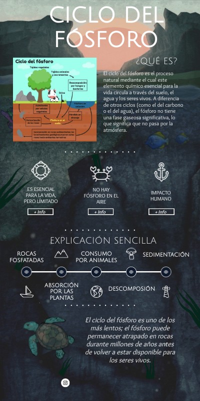 El ciclo del fósforo es uno de los más lentos; el fósforo puede permanecer atrapado en rocas durante millones de años antes de volver a estar disponible para los seres vivos.