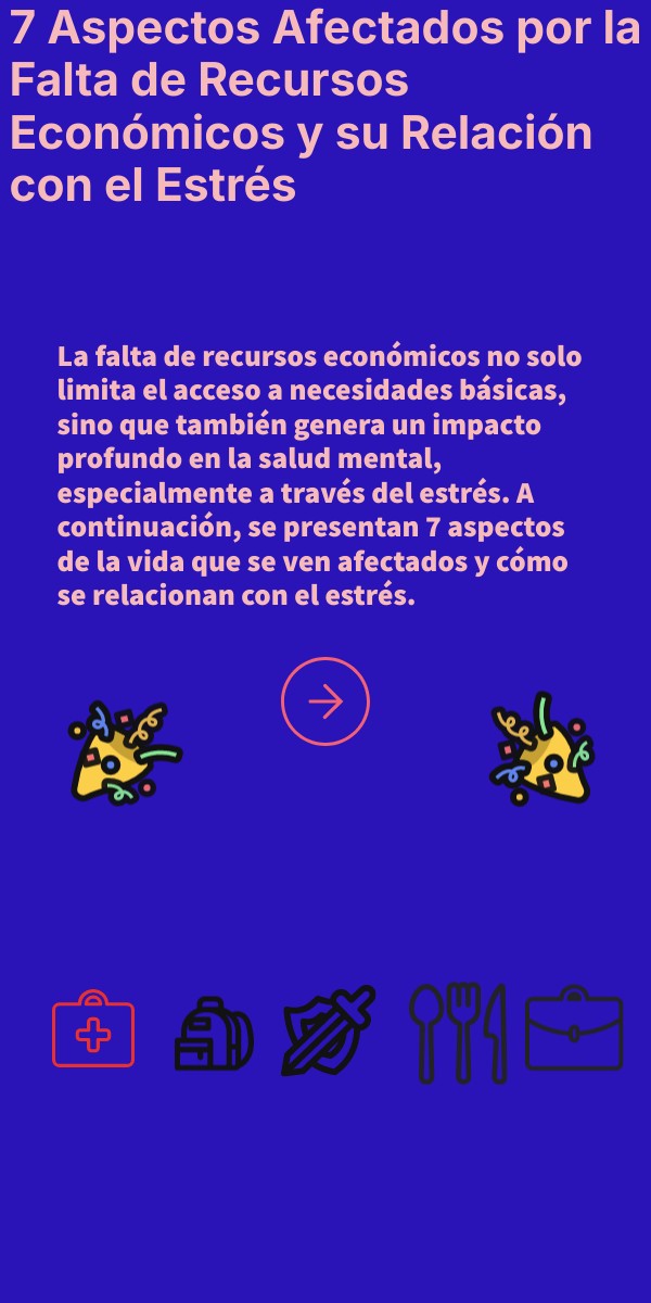 La falta de recursos económicos no solo limita el acceso a necesidades básicas, sino que también genera un impacto profundo en la salud mental, especialmente a través del estrés. A continuación, se presentan 7 aspectos de la vida que se ven afectados y cómo se relacionan con el estrés.