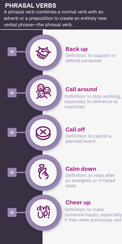 A phrasal verb combines a normal verb with an adverb or a preposition to create an entirely new verbal phrase—the phrasal verb.