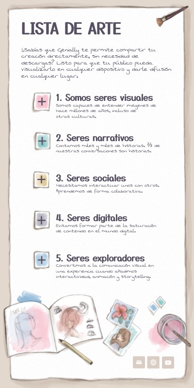 Con las plantillas de Genially podrás incluir recursos visuales para dejar a tu audiencia con la boca abierta. También destacar alguna frase o dato concreto que se quede grabado a fuego en la memoria de tu público e incluso embeber contenido externo que sorprenda: vídeos, fotos, audios... ¡Lo que tú quieras!