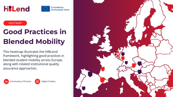 This heatmap illustrates the HIBLend framework, highlighting good practices in blended student mobility across Europe, along with related institutional quality assurance approaches.