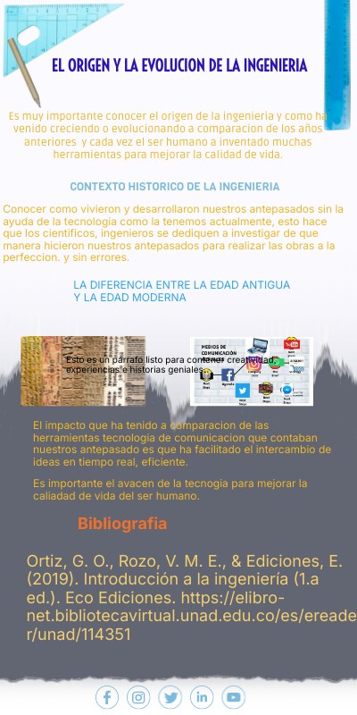 Es muy importante conocer el origen de la ingenieria y como ha venido creciendo o evolucionando a comparacion de los años anteriores y cada vez el ser humano a inventado muchas herramientas para mejorar la calidad de vida.