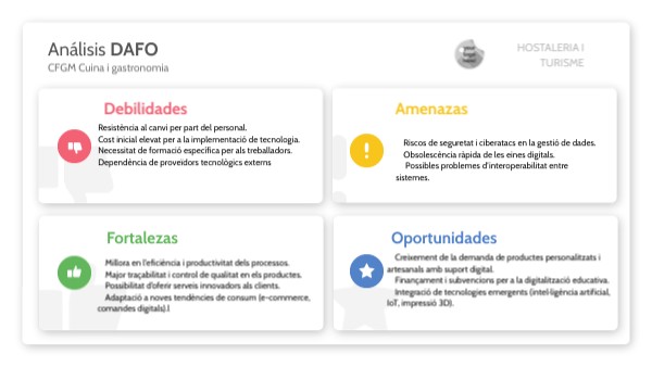 Creixement de la demanda de productes personalitzats i artesanals amb suport digital. Finançament i subvencions per a la digitalització educativa. Integració de tecnologies emergents (intel·ligència artificial, IoT, impressió 3D).