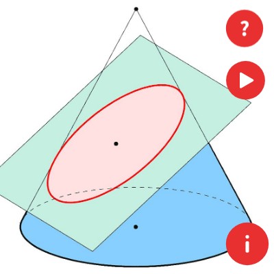 La elipse es la intersección de una superficie cónica con un plano, de tal manera que la inclinación del plano no supere la inclinación de la recta generatriz del cono, consiguiendo así que la intersección sea una curva simple cerrada. En otro caso la intersección pudiera ser un círculo, una hipérbola o una parábola.