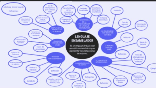 El lenguaje ensamblador es un tipo de lenguaje de bajo nivel que utiliza mnemotécnicos o abreviaciones (instrucciones simbólicas) en lugar de los códigos binarios del lenguaje de máquina. Cada instrucción en ensamblador corresponde directamente a una instrucción de la arquitectura del procesador. Ejemplo: Instrucción de ensamblador: MOV AX, 1 Esta instrucción mueve el valor 1 al registro AX del procesador.