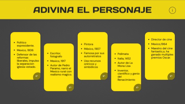 Trata de identificar el personaje antes de voltear la tarjeta. Si aciertas, haz clic en el signo ✔, y si te equivocas, selecciona ✖.