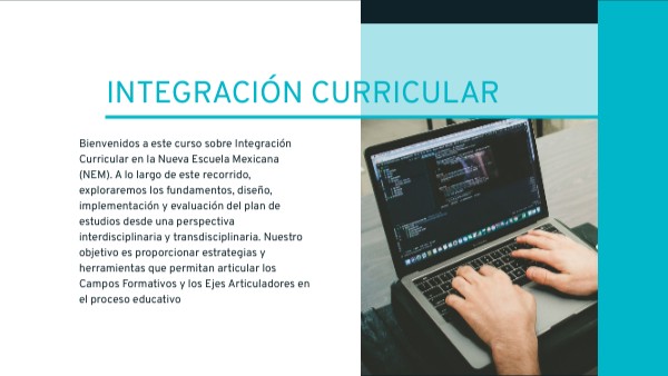Bienvenidos a este curso sobre Integración Curricular en la Nueva Escuela Mexicana (NEM). A lo largo de este recorrido, exploraremos los fundamentos, diseño, implementación y evaluación del plan de estudios desde una perspectiva interdisciplinaria y transdisciplinaria. Nuestro objetivo es proporcionar estrategias y herramientas que permitan articular los Campos Formativos y los Ejes Articuladores en el proceso educativo