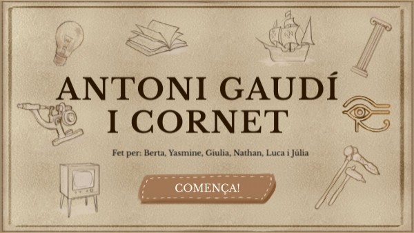 Antoni Gudí va ser un artiquecte català. Va neixer a Reus el 25 de juny del 1852 i va morir al 10 de juny del 1926 als 73 anys. Durant la seva infancia va estar malalt i l'unic que feia era mirar per la finestra la natura que l'envoltava i per aixó les seves obres estan inspirades en la natura.