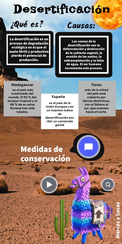 Las causas de la desertificación son la deforestación y destrucción de la cubierta vegetal, la erosión de los suelos, la sobreexplotación y la falta de agua. El ser humano incrementa este proceso.