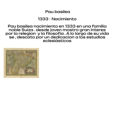 Pau basilea 1333 - Nacimiento Pau basilea nacimiento en 1333 en una familia noble Suiza . desde joven mostro gran interes por la relegion y la filosofia . A lo largo de su vida se , descato por un dedicacion a los estudios eclesiásticos