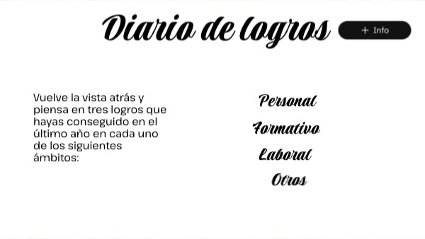 Vuelve la vista atrás y piensa en tres logros que hayas conseguido en el último año en cada uno de los siguientes ámbitos: