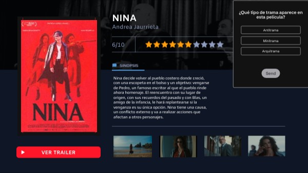 Nina decide volver al pueblo costero donde creció, con una escopeta en el bolso y un objetivo: vengarse de Pedro, un famoso escritor al que el pueblo rinde ahora homenaje. El reencuentro con su lugar de origen, con sus recuerdos del pasado y con Blas, un amigo de la infancia, le hará replantearse si la venganza es su única opción. Nina tiene una causa, un conflicto externo y va a realizar acciones que afectan a otros personajes.